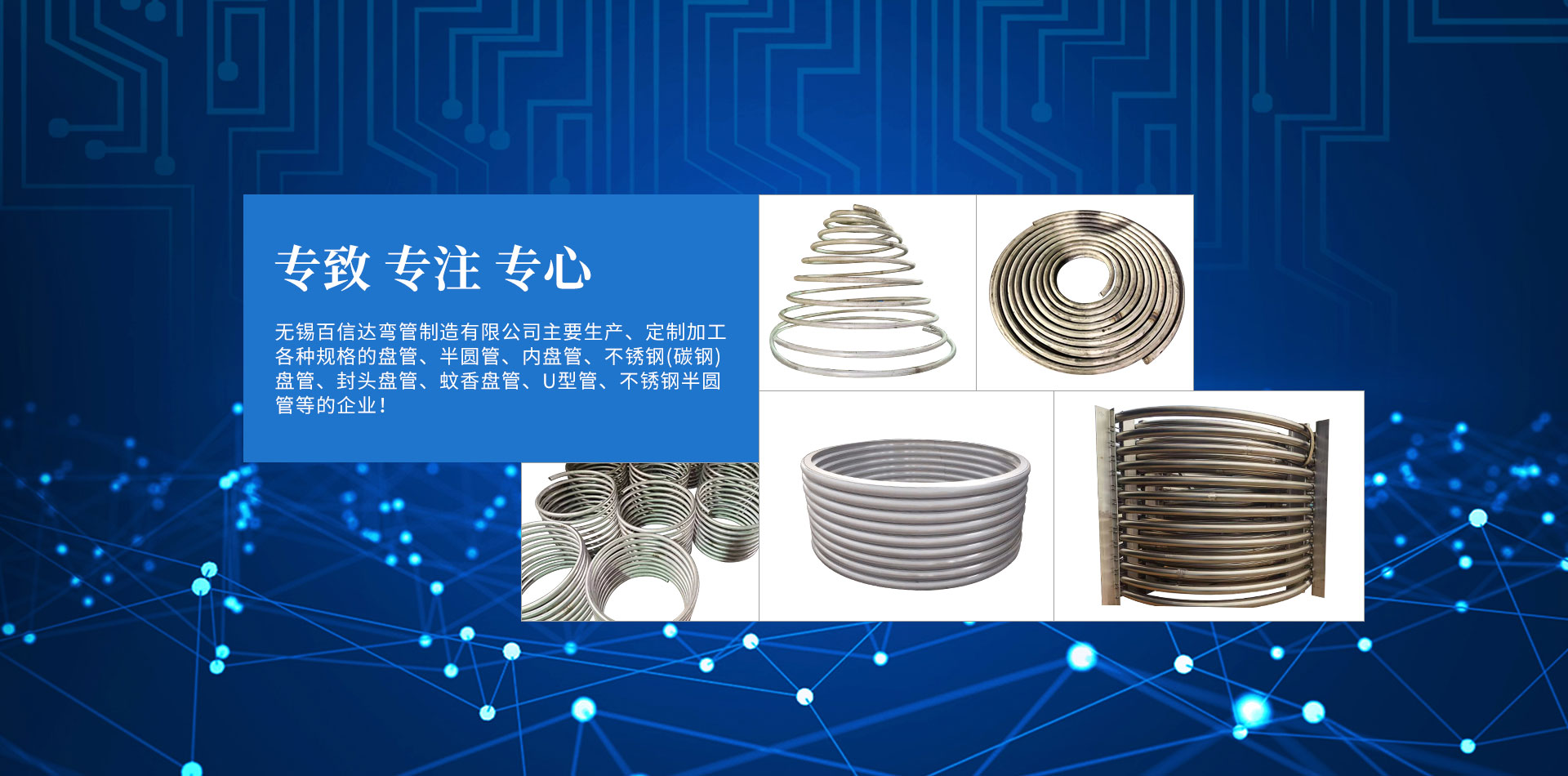 無錫百信達彎管制造有限公司位于經(jīng)濟發(fā)達、風(fēng)景秀麗的太湖之濱。本公司擁有完整、科學(xué)的質(zhì)量管理體系,公司的誠信、實力和產(chǎn)品質(zhì)量獲得業(yè)界的認(rèn)可。公司專注生產(chǎn)、定制加工各種規(guī)格的盤管、半圓管、內(nèi)盤管、不銹鋼盤管、封頭盤管、蚊香盤管、U型管、不銹鋼半圓管、碳鋼盤管等的企業(yè)。本公司設(shè)計加工的彎管設(shè)備,質(zhì)量精良、結(jié)構(gòu)合理,效率高、操作簡易、經(jīng)久耐用。公司已經(jīng)承接了各地多個大型場館工程項目的彎管加工,屢次得到了多家大客戶的好評。努力滿足客戶的需要,不斷提高自身水平是公司追求的目標(biāo)。歡迎社會各界朋友蒞臨無錫百信達彎管制造有限公司參觀、指導(dǎo)和業(yè)務(wù)洽談!